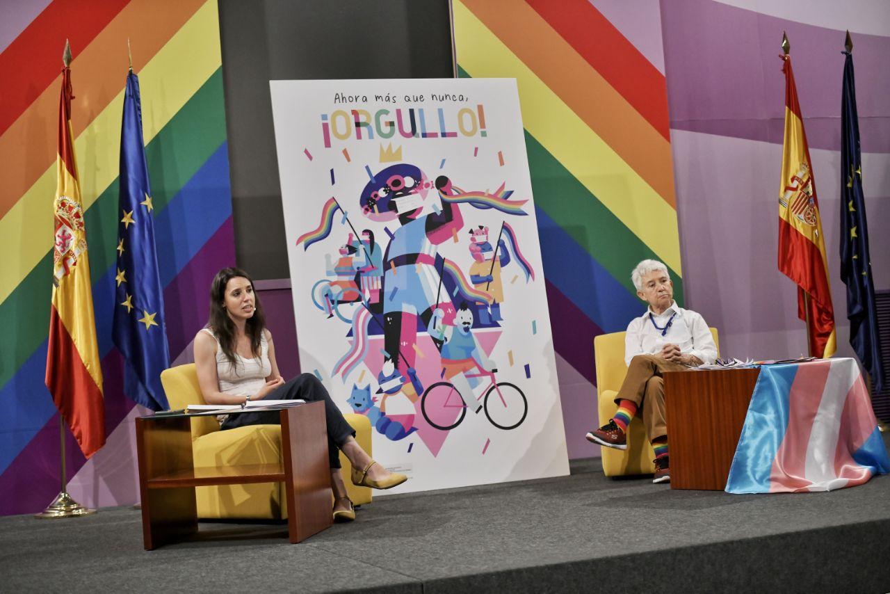 La ministra de Igualdad, Irene Montero, y la directora general de Diversidad Sexual y Derechos LGTBI, Boti G. Rodrigo, han presentado este mediodía a través de las redes sociales la campaña y la agenda del Ministerio de Igualdad para el Orgullo 2020.