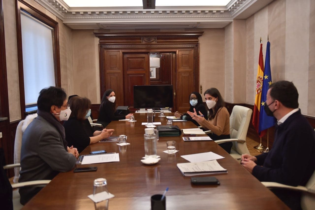 La ministra de Igualdad, Irene Montero, y la directora General para la Igualdad de Trato y Diversidad Étnico Racial, Rita Bosaho, se ha reunido este mediodía con la Alianza por una Ley de Igualdad de Trato. La Alianza, formada por Accem, Asociación Rumiñahui, CEAR, Cruz Roja Española, Fundación Cepaim, Fundación Secretariado Gitano, Movimiento por la Paz -MPDL- y Red Acoge, pretende impulsar la aprobación de la Ley Integral de Igualdad de Trato y Lucha contra la Discriminación. La ministra y la directora general, les han trasladado el firme compromiso del Gobierno de impulsar esta Ley, mejorando el régimen de infracciones y sanciones en materia de igualdad de trato y no discriminación. Tanto la Alianza como Igualdad, han compartido la necesidad de que la Ley refuerce la atención a las víctimas desde un enfoque tanto preventivo como reparador.